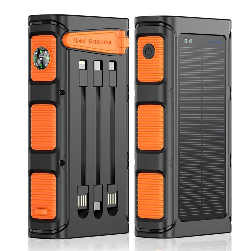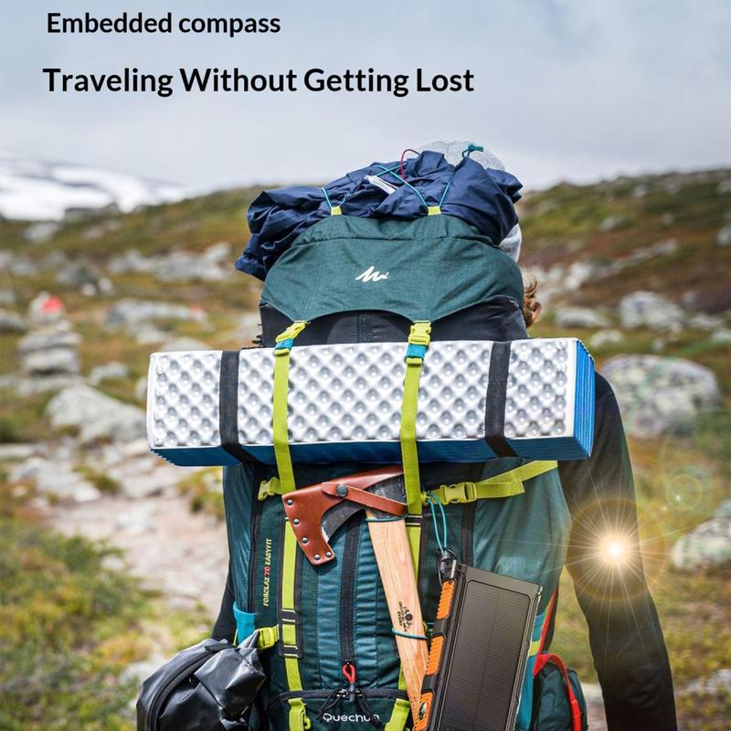Pysy virralla varustettuna luonnossa tällä 30000mAh:n käsikammella toimivalla aurinkovoimalla varustetulla varavirtalähteellä, joka on kestävä kannettava laturi, suunniteltu retkeilyyn, vaellukseen, matkustamiseen ja hätätilanteisiin. Kolmen lataustavan - langallisen pikalatauksen, aurinkolatauksen ja käsikammella toimivan varavirran - ansiosta se tarjoaa enemmän joustavuutta tilanteissa, joissa perinteisiä virtalähteitä ei ole saatavilla.