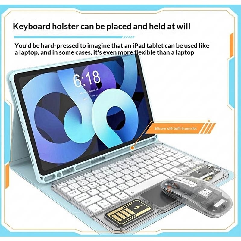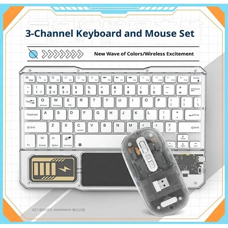 KB333 Läpinäkyvä Bluetooth-näppäimistö- ja hiirisarja - 3-kanavainen langaton RGB-taustavalaistu näppäimistö kosketuslevyllä