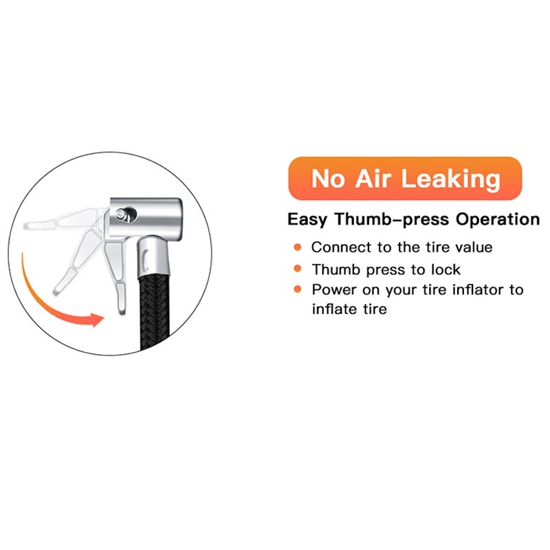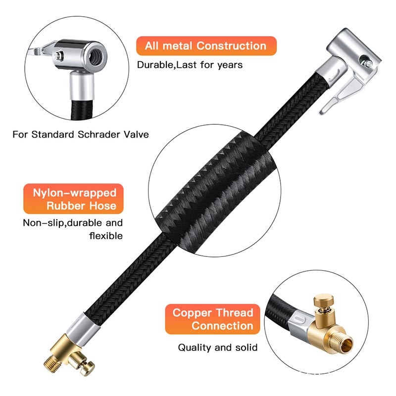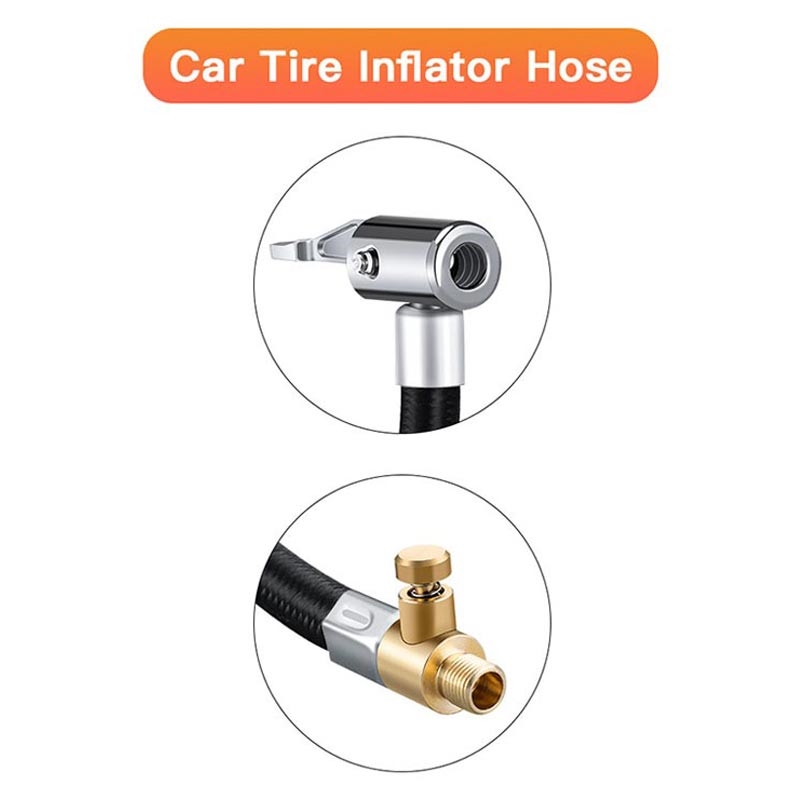 Tämä kestävä, kulumista estävä renkaiden ilmatäytön letku tekee renkaiden täyttämisestä nopeampaa, helpompaa ja kätevämpää. Se on suunniteltu autoihin, polkupyöriin ja moottoripyöriin, ja se kiinnittyy nopeasti ilmapumppuihin ja säilyttää turvallisen liitoksen kierteitetyn liitännän ja korkeapaineisen rakenteensa ansiosta.