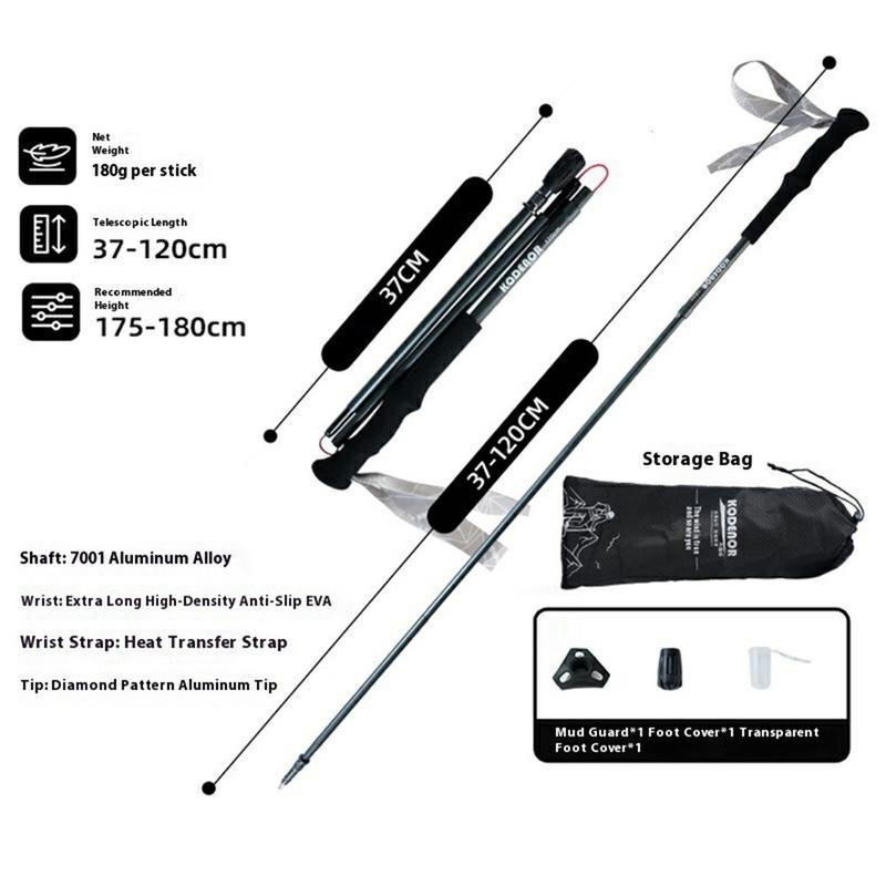 KODENOR-retkeilysauvassa yhdistyvät kevyt kannettavuus ja kestävyys, joten se sopii täydellisesti seikkailijoille, jotka tarvitsevat luotettavaa tukea ilman bulkkia. Sen kokoontaitettava, kompakti rakenne takaa, että voit pakata sen helposti reppuusi, kun taas säädettävä pituus takaa joustavuuden eri maastoissa.