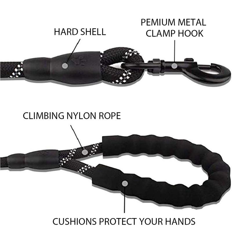 Tämä kestävä koiran talutushihna on valmistettu korkealaatuisesta, venymiskestävästä nailonköydestä, joka on suunniteltu kestämään koirien vetovoimaa kävelylenkillä ja harjoituksissa. Hihnassa on pehmeä EVA-pehmustettu kahva, joka tarjoaa mukavan otteen ja suojaa kättäsi köyden palamiselta. Hihna sisältää heijastavia lankoja, jotka parantavat näkyvyyttä yöllisillä kävelyretkillä ja takaavat sekä sinun että lemmikkisi turvallisuuden. Raskas sinkkiseoskiinnike, jossa on 360 astetta kääntyvä muotoilu, estää sotkeutumisen ja mahdollistaa sujuvat ja nautinnolliset ulkoilut.