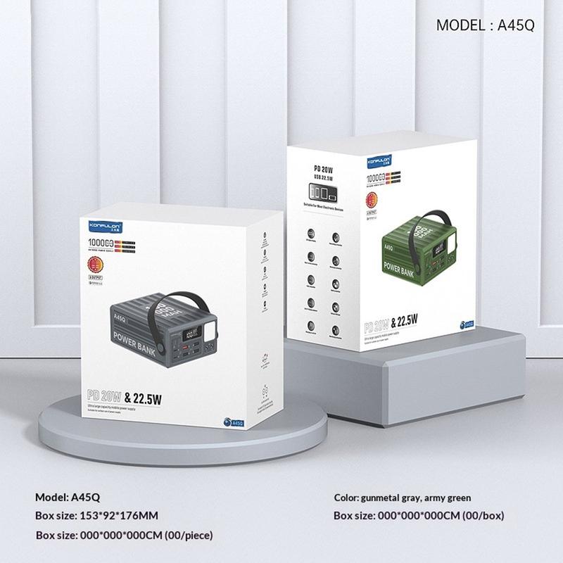 Konfulon A45Q -varavirtalähde 100000mAh - 22.5W:n pikalatausasema LED-näytöllä ja 7 liitännällä