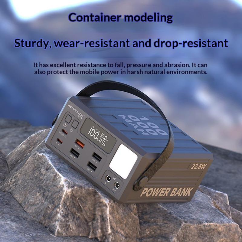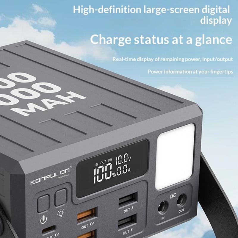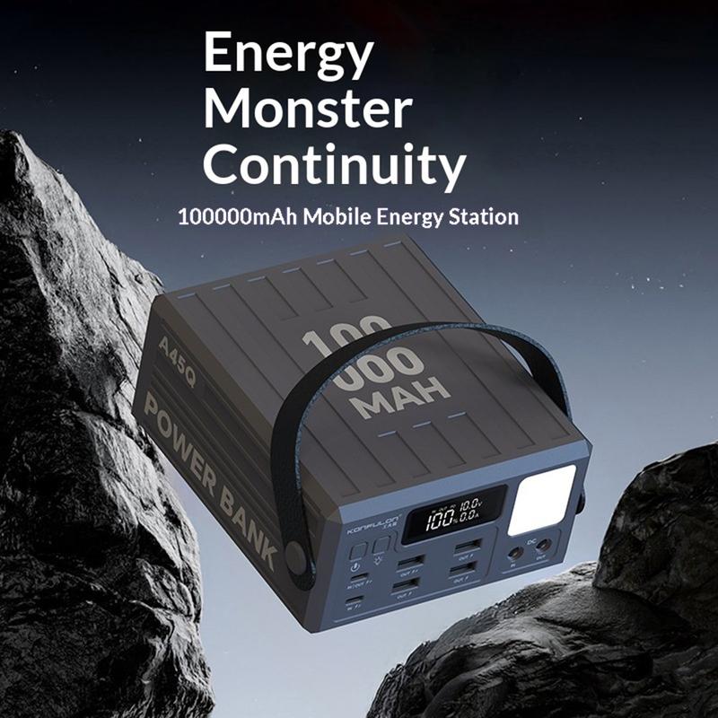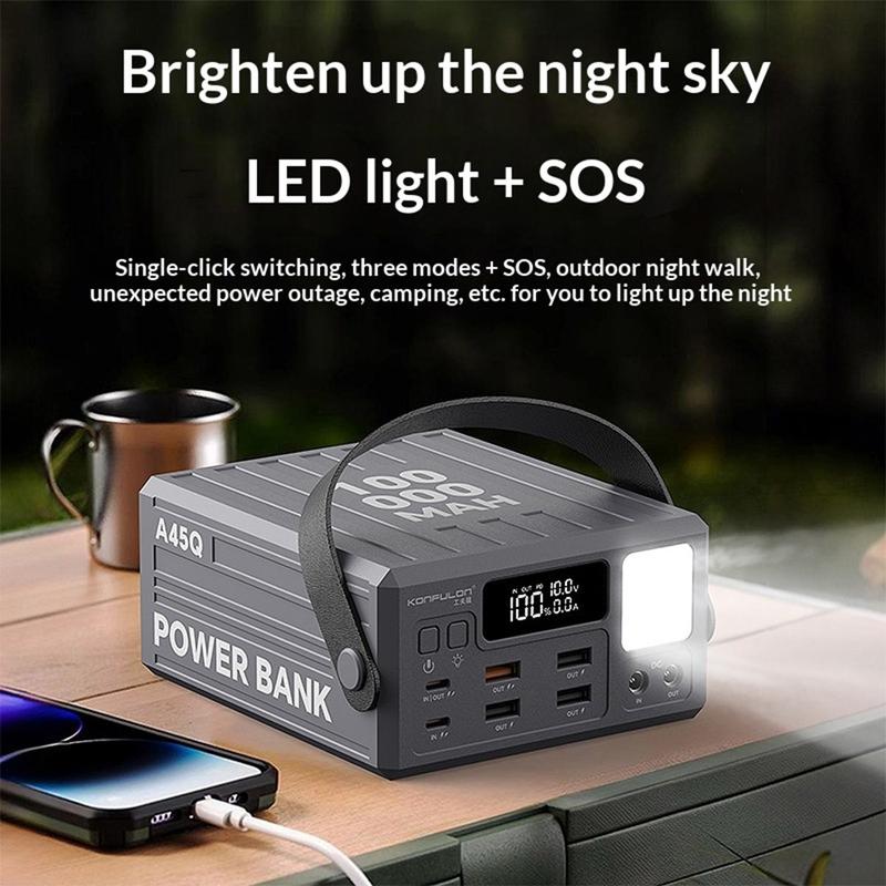 Lataa useampia laitteita pidempään Konfulon A45Q 100000mAh -varavirtalähteellä. Tämä suurikapasiteettinen latausasema on suunniteltu matkoille, ulkokäyttöön, retkeilyyn ja kotikäyttöön varavirtalähteeksi, ja se tarjoaa luotettavan energianvarastoinnin sekä 7 lähtöporttia, jotka mahdollistavat useiden laitteiden kätevän lataamisen.