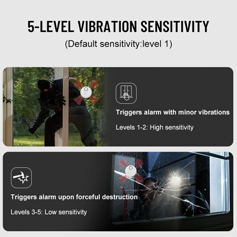 Turvaa kotisi, toimistosi tai liikkeesi tällä erittäin herkällä ovi- ja ikkunahälyttimellä, joka on suunniteltu havaitsemaan tärinät, iskut tai lasin rikkoutuminen. 130dB:n säädettävän sireenin, mukautettavien herkkyystasojen ja helpon työkaluttoman asennuksen ansiosta se on luotettava ja edullinen turvallisuusratkaisu tunkeilijoita vastaan.