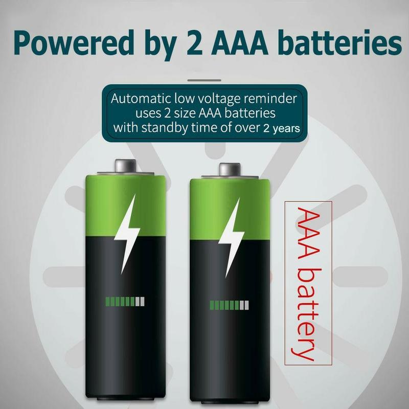 - Paristokäyttöinen: Toimii 2 × AAA-paristolla (mukana), pitkä valmiusaika ja muistutus alhaisesta paristokapasiteetista.