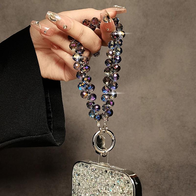 14cm:n kristallikoruinen puhelinnauha - rannekoru ja avaimenperä, jossa on läpinäkyvä kiinnityskieleke