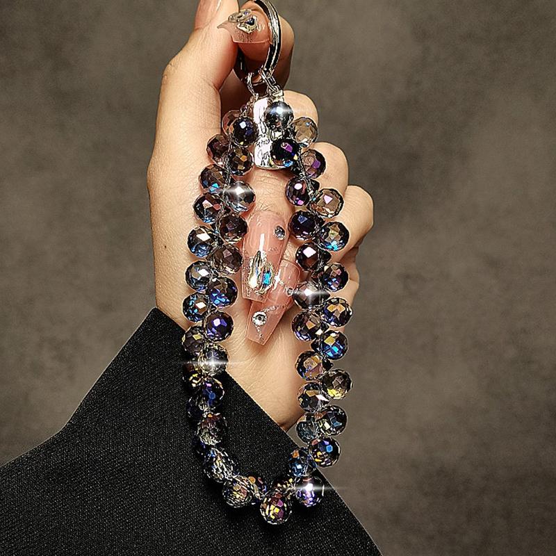 14cm:n kristallikoruinen puhelinnauha - rannekoru ja avaimenperä, jossa on läpinäkyvä kiinnityskieleke
