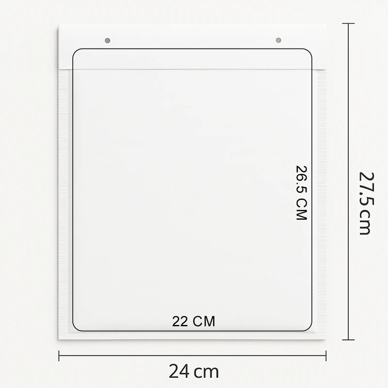 Kirjekuori sopii E5-kokoon ja sen ulkomitat ovat 240x275mm ja sisämitat 220x265mm.