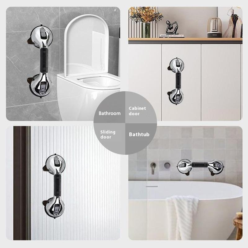Kylpyhuoneen turvakahva, jossa on imukuppikiinnitys, tarjoaa turvallisen, poraamattoman tukiratkaisun kylpyammeisiin, suihkuihin, lasioviin ja sileisiin kaakeliseiniin. Se on suunniteltu lapsille, iäkkäille käyttäjille ja kaikille, jotka tarvitsevat lisävakautta, ja siinä on vahvat imukupit, jotka luovat lujan otteen vahingoittamatta pintoja. Kestävästä ruostumattomasta teräksestä ja ABS-muovista valmistettu tuki on korroosionkestävä ja luotettava myös kosteissa kylpyhuoneympäristöissä.