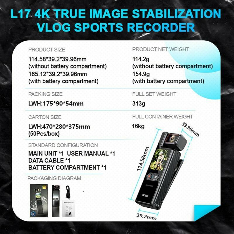 L17 4K-toimintakamera 1.69 tuuman kosketusnäytöllä - 180 astetta kääntyvä 160 asteen laajakulmaobjektiivi, 6-akselinen EIS, WiFi, sisältää 64 Gt:n muistikortin + kortinlukijan