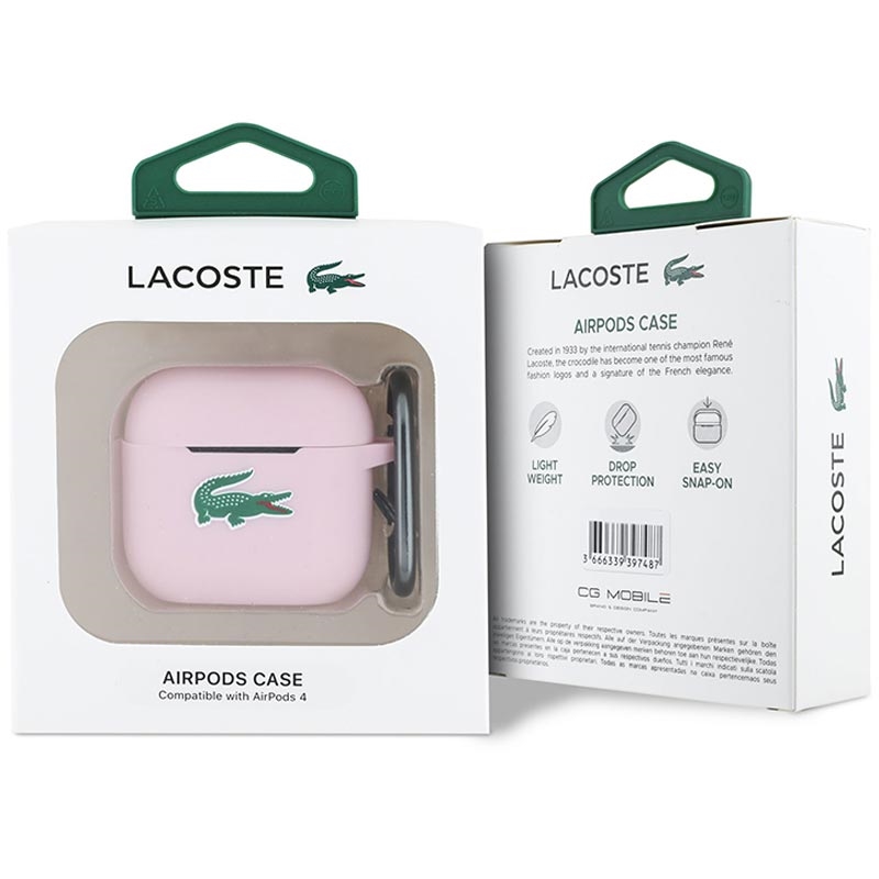 Lacoste Croc Logo -nestemäinen silikonikotelo AirPods 4 -kuulokkeille - ensiluokkainen pehmeä suoja