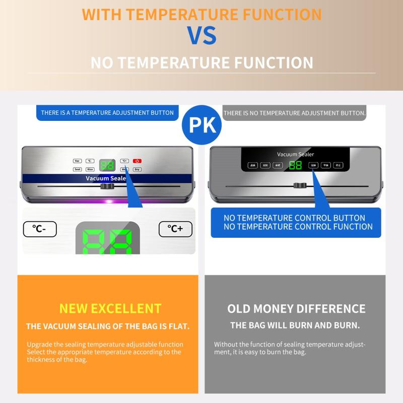 Tämä sulkija tukee kuiva- ja märkä-tiloja, tyhjiö + sulkeminen, vain sulkeminen ja jopa ulkoinen pumppaus, joten voit säilyttää kaiken välipaloista ja kahvipavuista marinoituihin lihoihin ja keittoihin (oikealla pussinkäsittelyllä). Vedenpitävä kosketusnäyttö ja säädettävä lämpötilansäätö auttavat sinua sovittamaan sulkemisen eri pussien paksuuksiin puhtaampien tulosten saavuttamiseksi ilman ylikuumenemista. Sisäänrakennettu liukuva leikkuri helpottaa pussien mitoitusta, ja irrotettavat komponentit auttavat nopeassa puhdistuksessa käytön jälkeen.