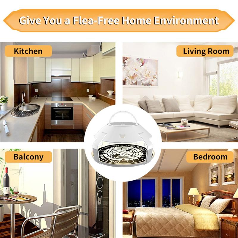 - Turvallinen LED-vetovoimatekniikka - Lähettää lempeän myrkyttömän LED-valon, joka houkuttelee tehokkaasti kirppuja ja pieniä hyönteisiä käyttämättä kemikaaleja tai vapauttamatta haitallisia kaasuja.