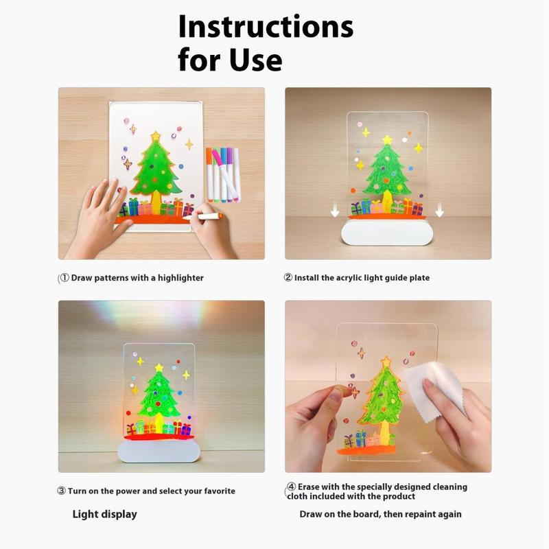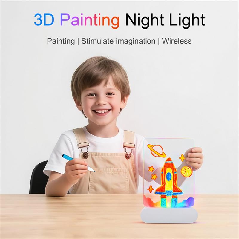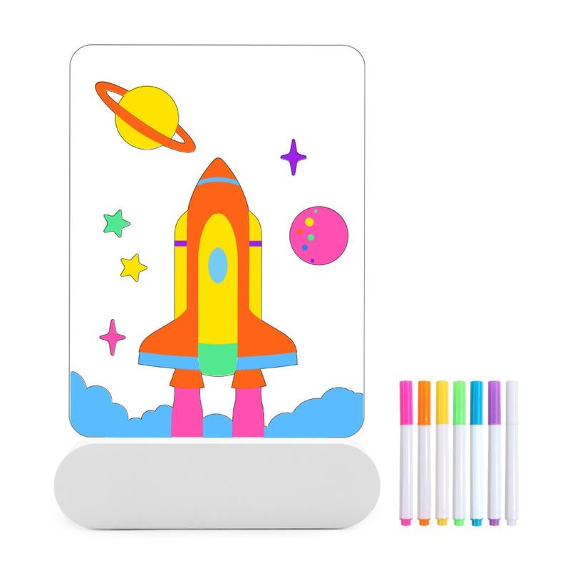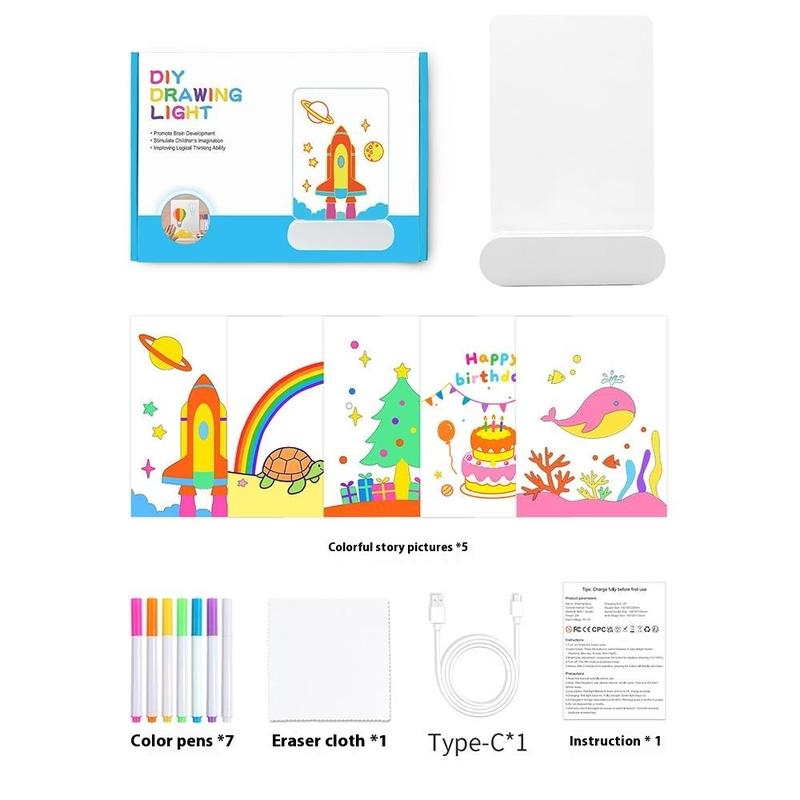 Ladattava pyyhittävä LED-piirustuslauta 7 värikynällä - 3D-akryylipiirustus ja muistiinpanojen yövalo