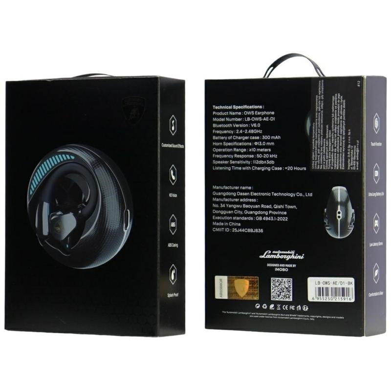 Lamborghini D1 avoimet langattomat kuulokkeet - Bluetooth 6.0, 13 mm:n kaiuttimet, jopa 20 tuntia kotelon kanssa, korvakoukku