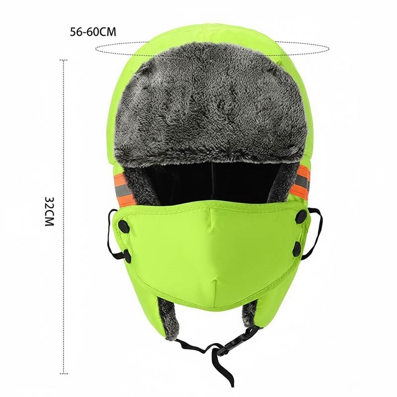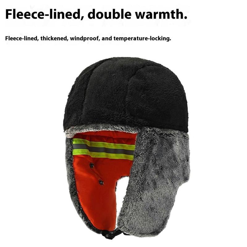 Talvihattu, jossa heijastavat nauhat - Fleece-vuorattu suojaava Trapper-hattu
