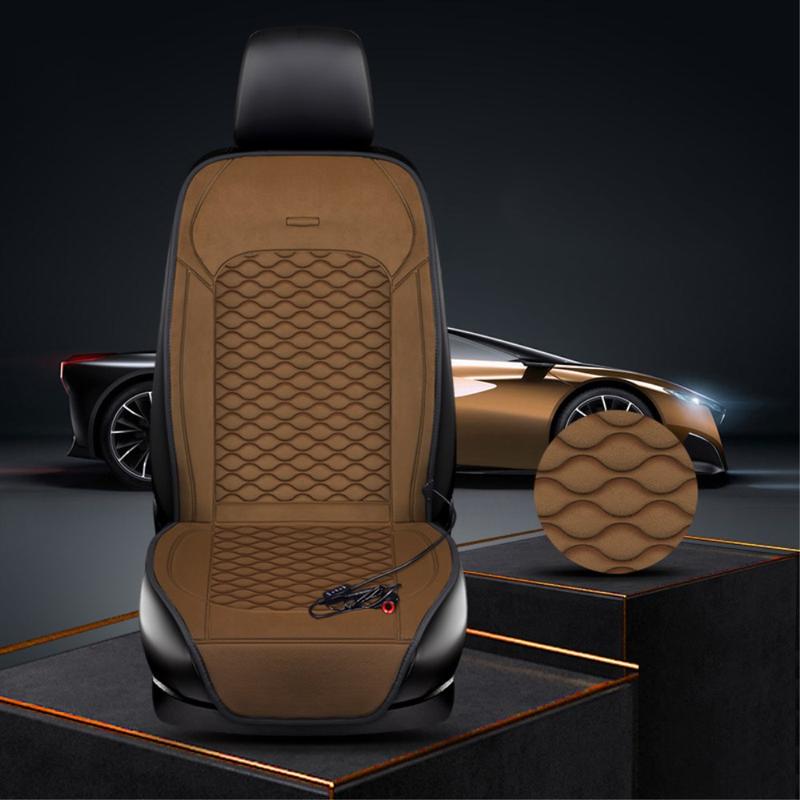 Lämmitetty talvi Plush auton istuintyyny - Kahvi