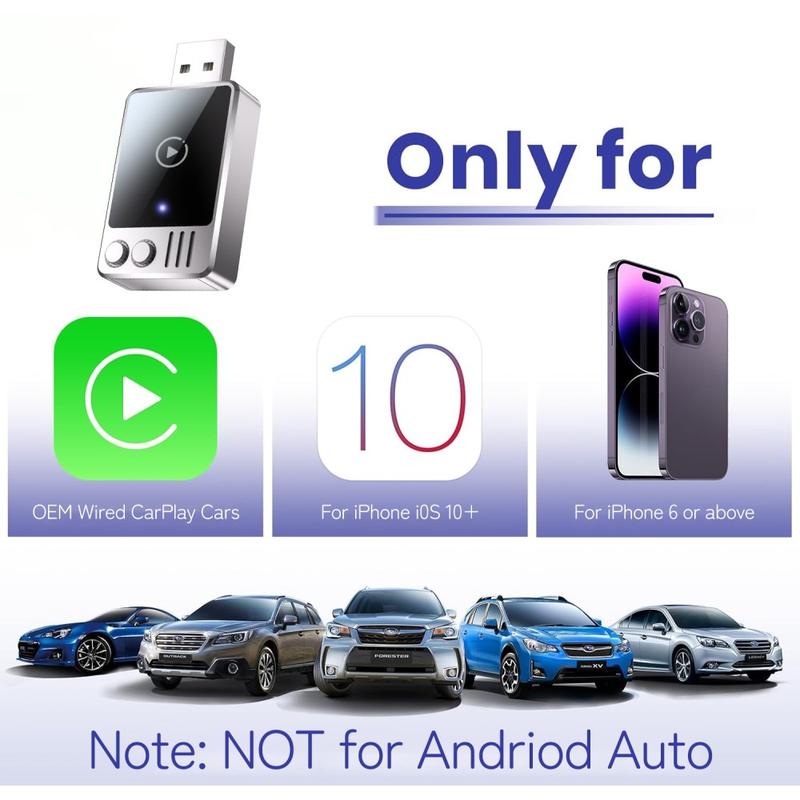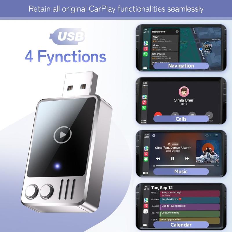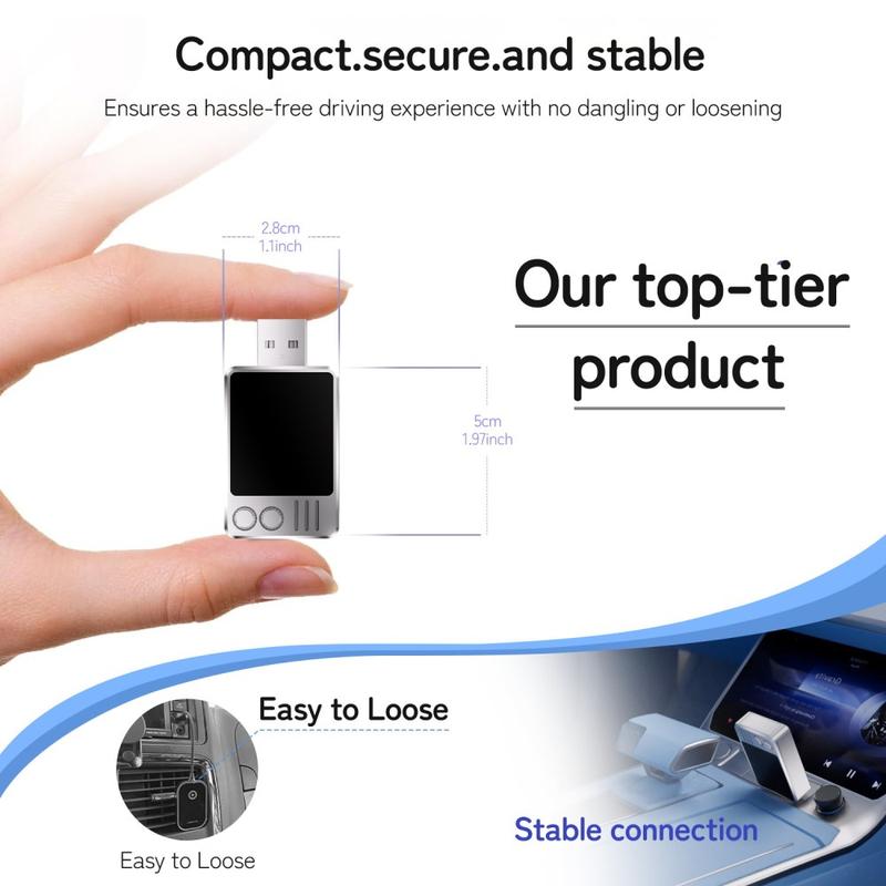 Langallinen ja langaton CarPlay-sovitin muuttaa nykyisen langallisen CarPlay-järjestelmän täysin langattomaksi. Tämä pienikokoinen USB-dongle on suunniteltu ajoneuvoihin, joissa on alkuperäinen langallinen CarPlay, ja se poistaa kaapelisotkun säilyttäen kaikki alkuperäiset CarPlay-toiminnot.