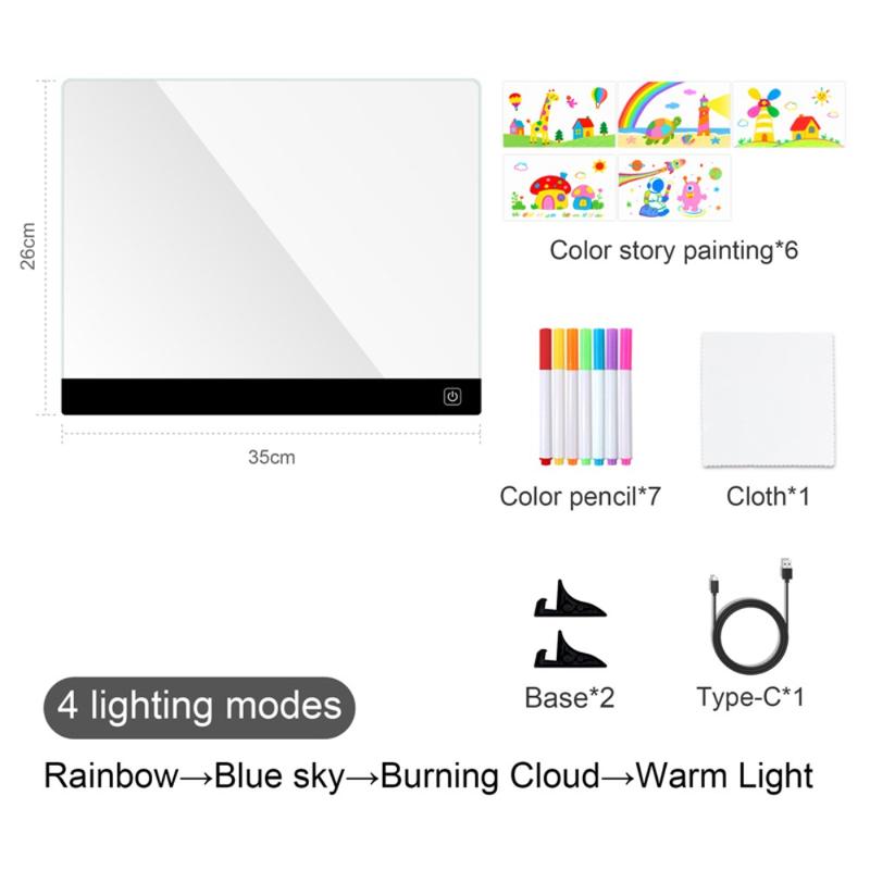 - Suuri ja käytännöllinen kirjoituspinta - 26x35cm:n valaistu akryylitaulu tarjoaa runsaasti tilaa piirtämiseen, muistiinpanojen tekemiseen tai värikkäiden muistutusten kirjoittamiseen.