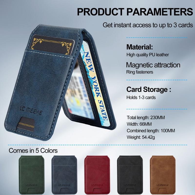 LC.IMEEKE magneettikorttiteline on ohut ja tyylikäs puhelimen lisävaruste, jossa yhdistyvät turvallinen korttisäilytys ja jokapäiväinen mukavuus. Se on suunniteltu kiinnitettäväksi magneettisesti yhteensopiviin puhelimiin, ja se pitää tärkeät korttisi lähelläsi säilyttäen samalla kevyen profiilin. Lompakko on ihanteellinen päivittäiseen käyttöön, sillä siinä on säädettävä jalusta kädet vapaana katseluun ja sisäänrakennettu RFID-suoja, olitpa sitten työmatkalla, matkalla tai rentoutumassa kotona.