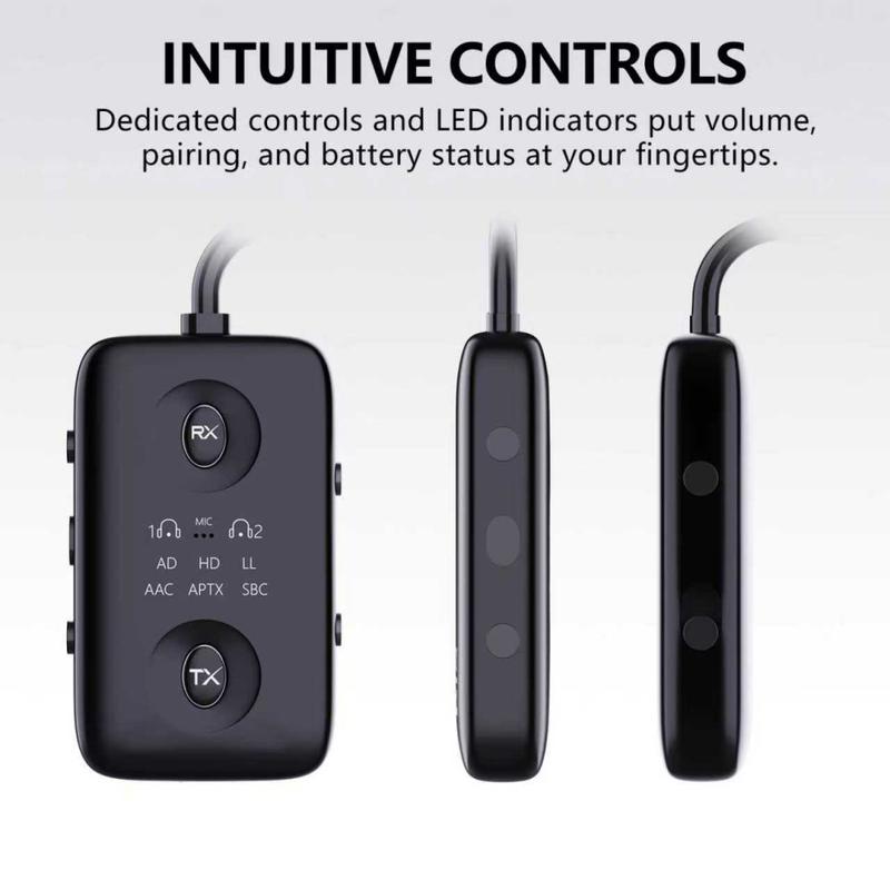 - Kaksitoiminen Bluetooth 5.4 -sovitin, joka toimii sekä lähettimenä (TX) että vastaanottimena (RX).
