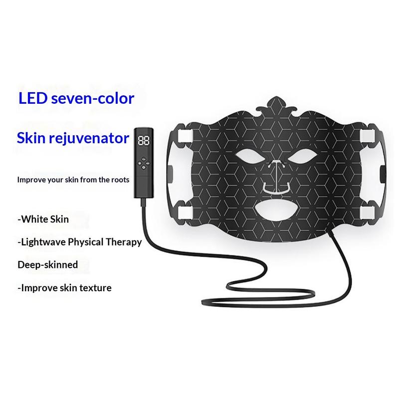 7-värinen LED-kasvonaamio ihon nuorentamiseen - silikoninen valohoitolaite, jossa on 87 LED-valoa ja säädettävä kirkkaus
