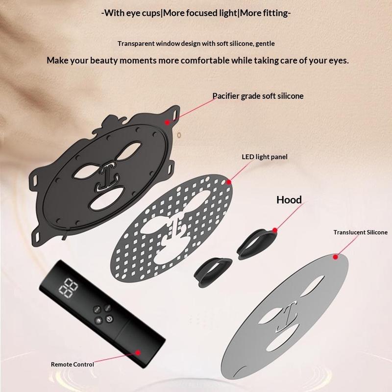 87 korkeaenergisen LED-valon ja 7 eri valovärin ansiosta tämä kasvonaamio tukee monipuolisempaa ihonhoitorutiinia. 5-tasoinen kirkkauden säätö helpottaa jokaisen hoitokerran mukauttamista mukavuustasosi mukaan, kun taas sisäänrakennettu ladattava akku ja Type-C-lataus mahdollistavat kätevän langattoman käytön. Läpinäkyvillä ikkunoilla varustettu silmäkuppisuunnittelu auttaa myös tekemään hoitokerroista mukavampia.