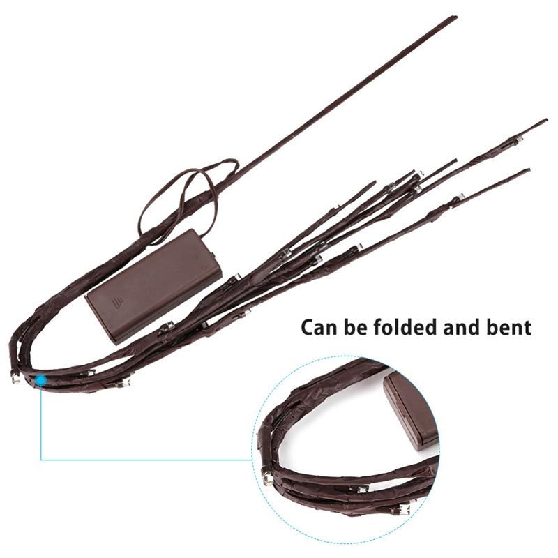 Nämä 20 LED-simulaatiopuun oksavalot tuovat lämpimän ja lumoavan hehkun mihin tahansa tilaan. Ne on suunniteltu taivutettavilla oksilla, ja ne toimivat turvallisesti kahdella AA-paristolla, joten ne voidaan muotoilla vapaasti ihanteellisen ulkoasun luomiseksi. Pehmeä valaistus korostaa kukka-asetelmia, lomamaisemia, ikkunan sisustusta ja sisustusta vaivattomalla viehätyksellä. Niiden muovirakenne on kevyt mutta kestävä, joten ne sopivat sisäkäyttöön ja ulkokäyttöön katetuilla alueilla.