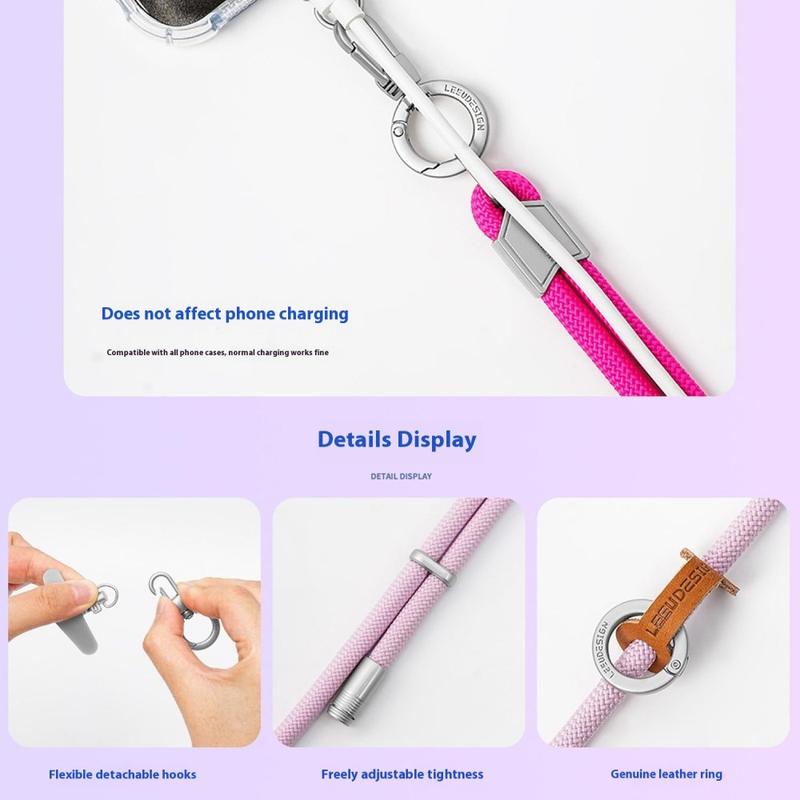 LEEU DESIGN Crossbody Phone Lanyard on täydellinen yhdistelmä mukavuutta, vahvuutta ja tyyliä. Kestävien materiaalien, säädettävän pituuden ja turvallisen kiinnityskielekkeen ansiosta se on suunniteltu kaikille, jotka arvostavat asusteissaan sekä toiminnallisuutta että muotia.