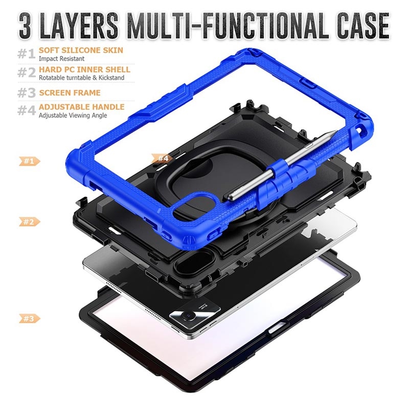Tämä kestävä hybridi suojakotelo suojaa Lenovo Tab M11, Idea Tab päivittäisiltä vaurioilta sekä iskuilta, että pudotuksilta. Integroitu 360 asteen kääntyvä alusta mahdollistaa mukavan käytön sekä pysty- että vaakasuunnassa. Suojakotelossa on myös olkahihna ja käsihihna, joten voit turvallisesti kuljettaa Lenovo Tab M11, Idea Tab mukanasi.