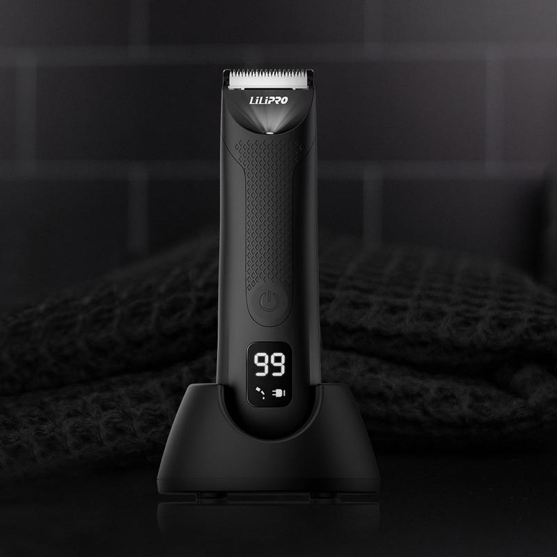Lilipro-sähköinen vartalokarvatrimmeri LED-näytöllä - vedenkestävä hoitopaketti latausalustalla