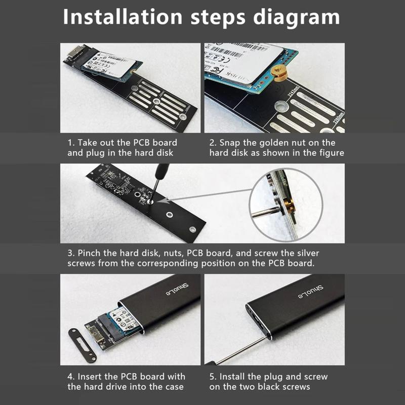 Muuta sisäinen M.2 SSD -asema kannettavaksi ulkoiseksi asemaksi MNO1 M.2 NGFF SSD -kotelolla. Tämä kompakti alumiinikotelo on suunniteltu M.2 B-Key (NGFF) SSD -asemille, joiden koot ovat 2230, 2242, 2260 ja 2280. Se liitetään USB 3.0 -liitännän kautta, joka mahdollistaa nopean tiedonsiirron jopa 5 Gbps:n nopeudella. Metallikotelo auttaa haihduttamaan lämpöä käytön aikana, ja USB-virtalähteellä toimiva plug and play -rakenne helpottaa käyttöä kotona, toimistossa tai matkoilla.
