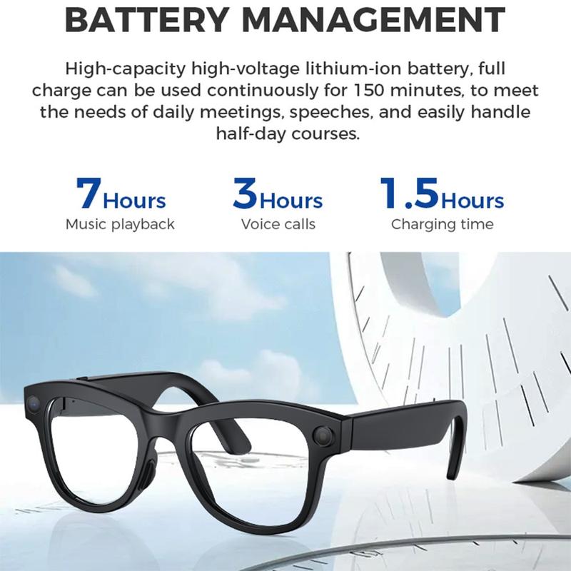 M01S AI-älylasit yhdistävät älykkään käännöksen, HD-tallennuksen, immersiivisen äänentoiston ja ääniyhteyden yhteen tyylikkääseen puettavaan laitteeseen. Sony IMX219 500W -kameralla varustetut lasit ottavat laadukkaita valokuvia ja sulavaa 1080p 30fps-videota. Dokumentoitpa sitten päiväsi tai nauhoitat handsfree-sisältöä, M01S tarjoaa selkeyttä ja vakautta sisäänrakennetun video-optimoinnin avulla.