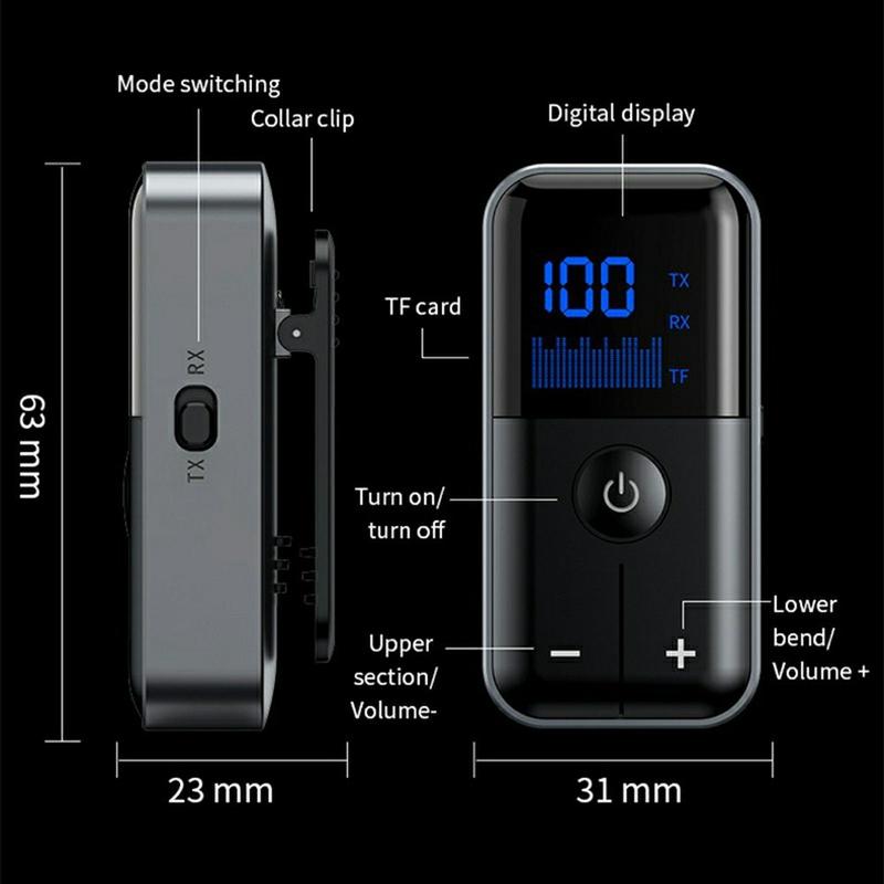 M20 Langaton Bluetooth 5.4 -vastaanotin/lähetin 3.5mm AUX:lla - Lavalier Clip -sovitin TF-kortin toistolla autoon ja kotiäänentoistoon