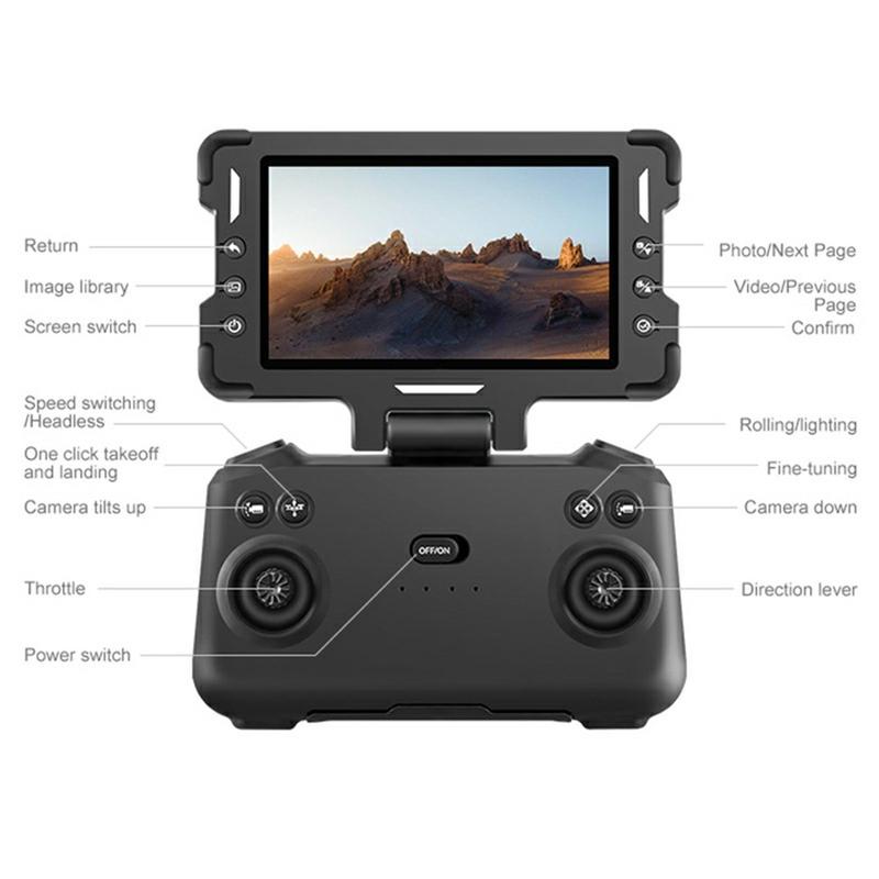 M6S taitettava drone, jossa on kaksi kameraa ja 4,3 tuuman näyttö kaukosäätimellä - optinen virtauksen paikannus, harjaton moottori, 1 akku