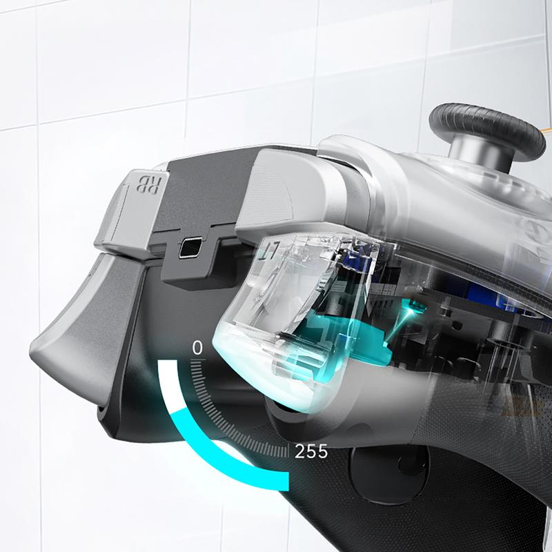 Machenike G5Pro Max tukee Bluetoothia, 2,4 GHz:n langatonta yhteyttä ja langallista USB-C-liitäntää, joten se mukautuu helposti eri laitteisiin ja pelityyleihin. Sen 1000 Hz:n kyselytaajuus auttaa tarjoamaan erittäin reagoivan syötön, kun taas magneettiset liipaisimet ja hienosäädetty ohjausjärjestelmä tarjoavat tarkemman liikkeen kilpa-, toiminta-, urheilu- ja ammuntapeleissä. Mukana toimitettu latausteline pitää ohjaimen ladattuna, säilytettynä ja valmiina seuraavaa pelisessiota varten.