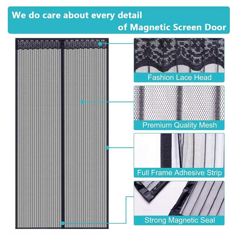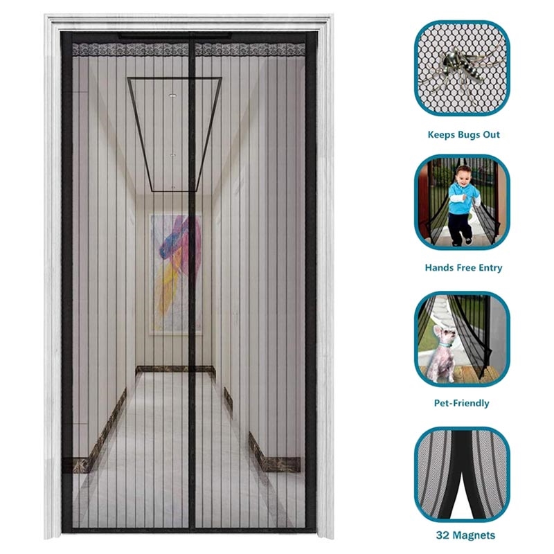 - Kädet vapaana sisäänpääsy - Automaattisen magneettisuljennan ansiosta voit kävellä läpi helposti, vaikka sinulla olisi mukanasi ruokatavaroita tai lemmikki. Se sulkeutuu saumattomasti takanasi pitäen hyönteiset poissa ja antaen sinun liikkua vapaasti.