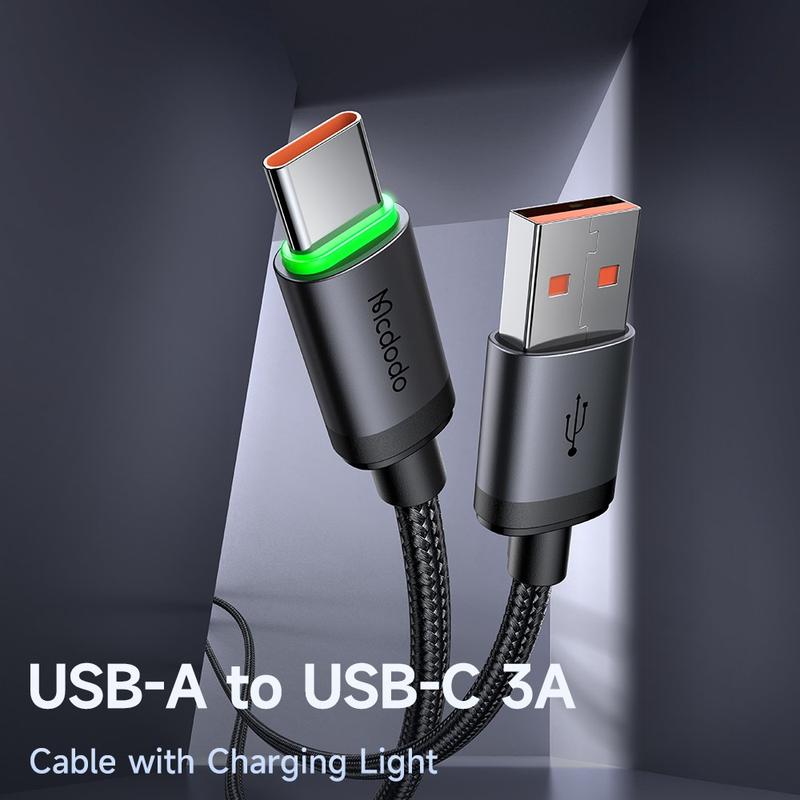 Mcdodo CA-3960 USB-A - USB-C -pikalatauskaapeli 1m, LED-latausvalo - 3 A QC-pikalataus ja 480 Mbps tiedonsiirto, nylonpunottu