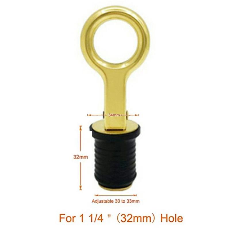 Messinkinen veneen tyhjennystulppa 32mm (1 1/4") - nokkatyylinen tyhjennysaukon tulppa, jossa on kumitiiviste rungolle / perälaudalle