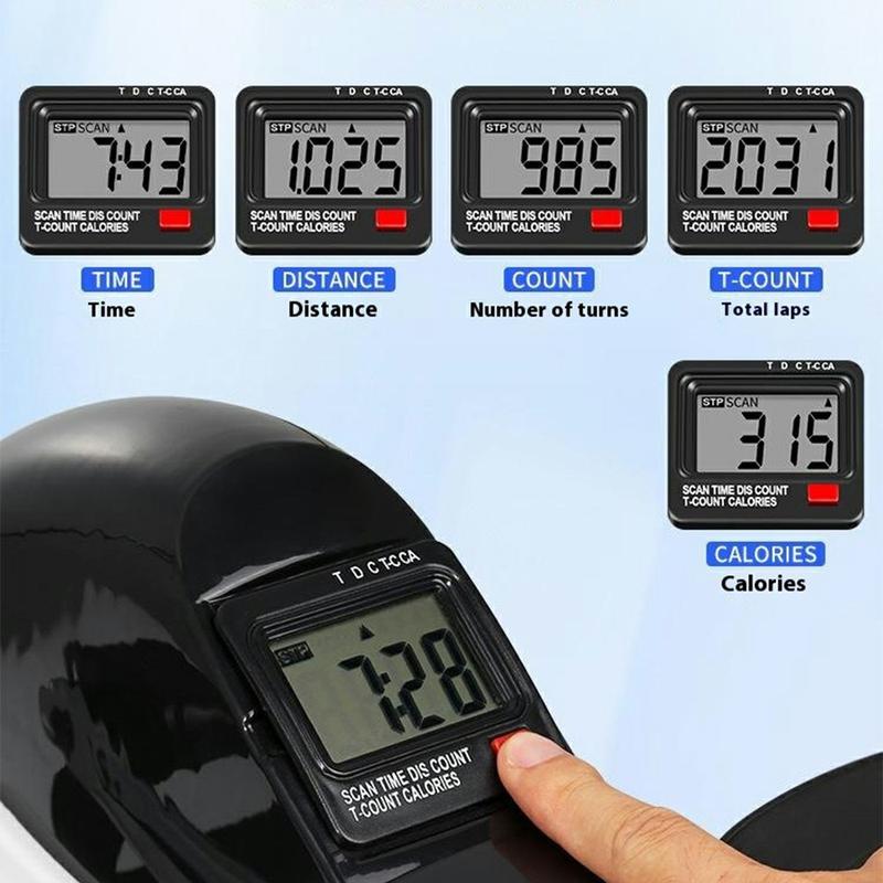 Selkeällä LED-näytöllä varustettu treenaaja näyttää ajan, toistot ja arvioidut kulutetut kalorit. Tämä auttaa sinua seuraamaan edistymistä välittömästi ja ylläpitämään terveellisiä, jäsenneltyjä harjoitusjaksoja.