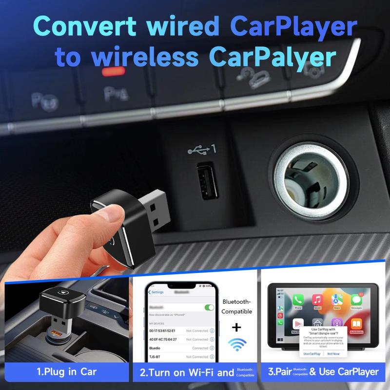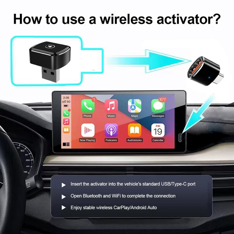 Koe auton mukavuuden seuraava taso Mini M26 2-in-1 Wireless CarPlay & Android Auto -adapterilla, joka on pienikokoinen ja älykäs USB-dongle, joka muuttaa tehdasjohdolla varustetun järjestelmäsi täysin langattomaksi käyttöliittymäksi. Nauti sujuvasta navigoinnista, musiikin suoratoistosta ja handsfree-viestinnästä - kaikki ilman sotkeutuvia kaapeleita.
