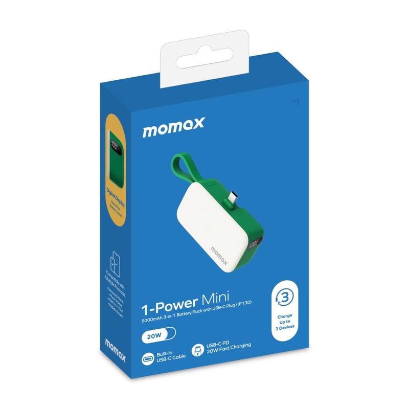 MOMAX 1 Power Mini Pop Art Portable Charger tuo luovuutta ja mukavuutta matkalatausrutiiniin MOMAX 1 Power Mini Pop Art Portable Charger -laturilla. Tämä pienikokoinen virtapankki tarjoaa 5000 mAh:n kapasiteetin, sisäänrakennetun USB-C-kaapelin ja 20 W:n pikalatauksen ansiosta nopean ja luotettavan virran useille laitteille, jotta pysyt yhteydessä missä ja milloin tahansa.