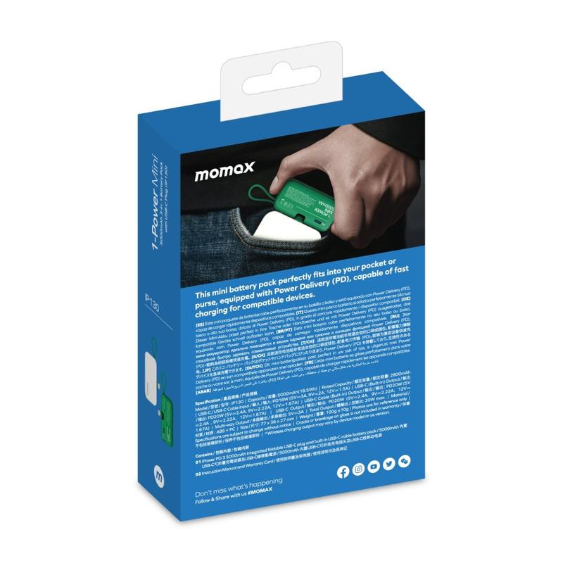 Sijoittaminen MOMAX 1 Power Mini Pop Art -kannettavaan laturiin tarkoittaa vähemmän aikaa pistorasiaan kytkettynä ja enemmän vapautta päivän tehtävien hoitamiseen. Sen sisäänrakennettu USB-C-kaapeli yksinkertaistaa kaapelinhallintaa, kun taas 20 W:n pikalatauskapasiteetti antaa runsaasti virtaa laitteillesi. Silmiinpistävän muotoilun ja kevyen rakenteen ansiosta se on ihanteellinen tasapaino toiminnallisuuden ja tyylikkyyden välillä.