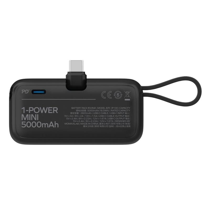 Momax 1-Power Mini Pop Art 5000mAh tehopankki / kannettava laturi USB-C-pistokkeella, USB-C-kaapelilla, USB-C-portilla - 20W