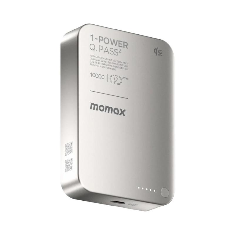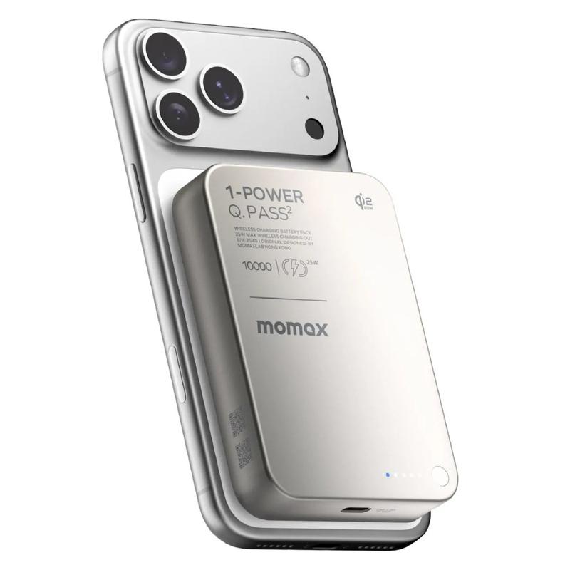 Momax 1-Power Q.Pass2 Qi2.2 25W magneettinen langaton tehopankki 10000mAh - USB-C PD 30W, Snap-On lataus iPhone 12-17 sarjalle