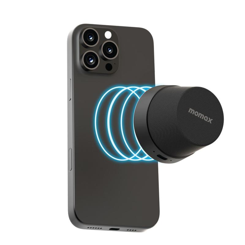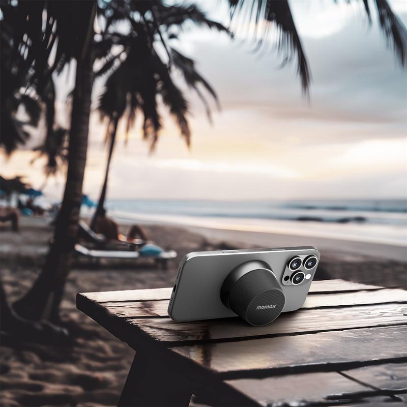 Momax 1-Vibe Go BS6 magneettinen mini-Bluetooth-kaiutin ja puhelinteline, 360° ääni ja IPX6-vesitiivis
