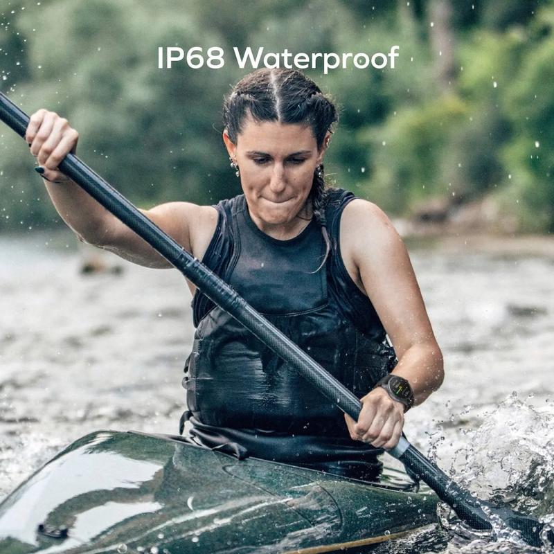 - IP68-vesitiiviys: sopii roiskeille, suihkulle ja matalassa vedessä uimiselle (enintään 1,5 m noin 30 minuutin ajan)