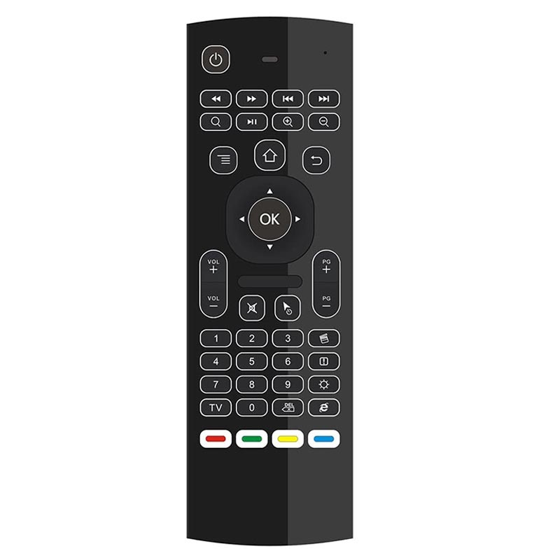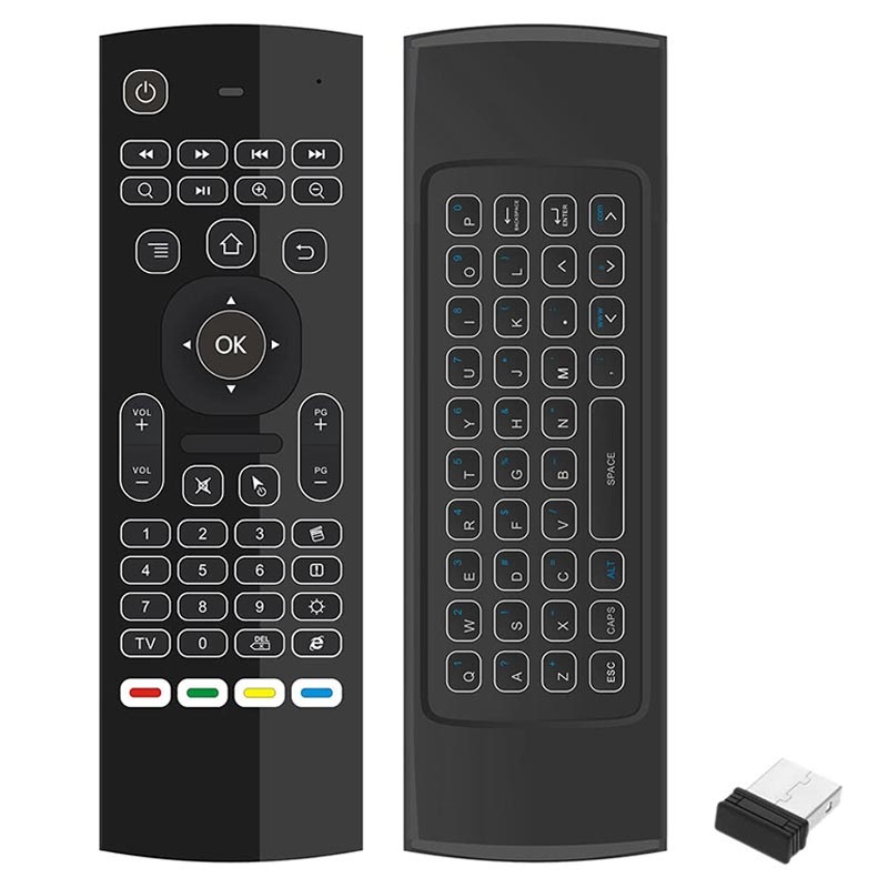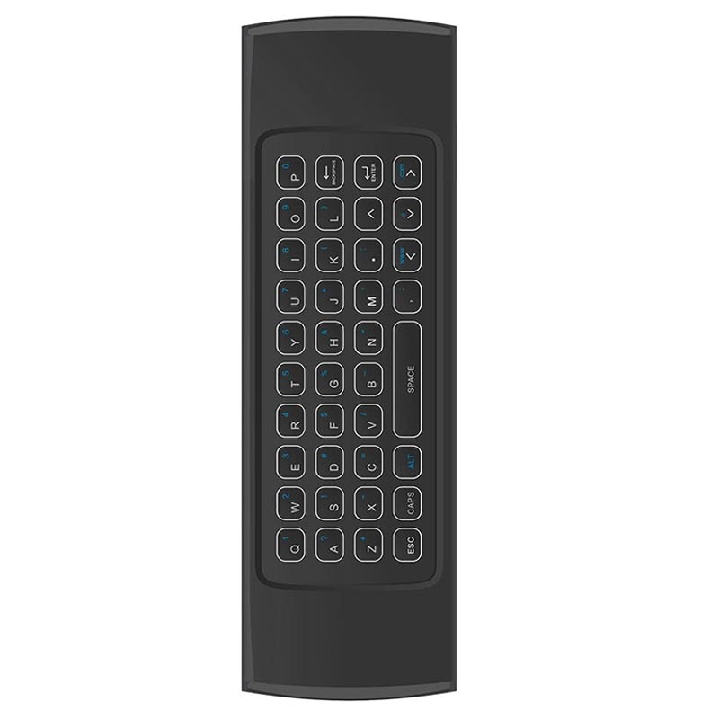 Tämän monitoimisen 5-1:ssä -langattoman ilmahiiren takana on näppäimistö, jossa on 38 näppäintä, joissa on taustavalo, jotta kirjoittaminen olisi mukavaa pimeässä. Lisäksi siinä on kaukosäädin, jossa on IR-oppimistoiminto, johon voit ohjelmoida enintään neljä painiketta. Sen mukana tulee 2,4 GHz:n USB-liitin ja se tukee Android-, Windows-, Mac OS- ja Linux-järjestelmiä.