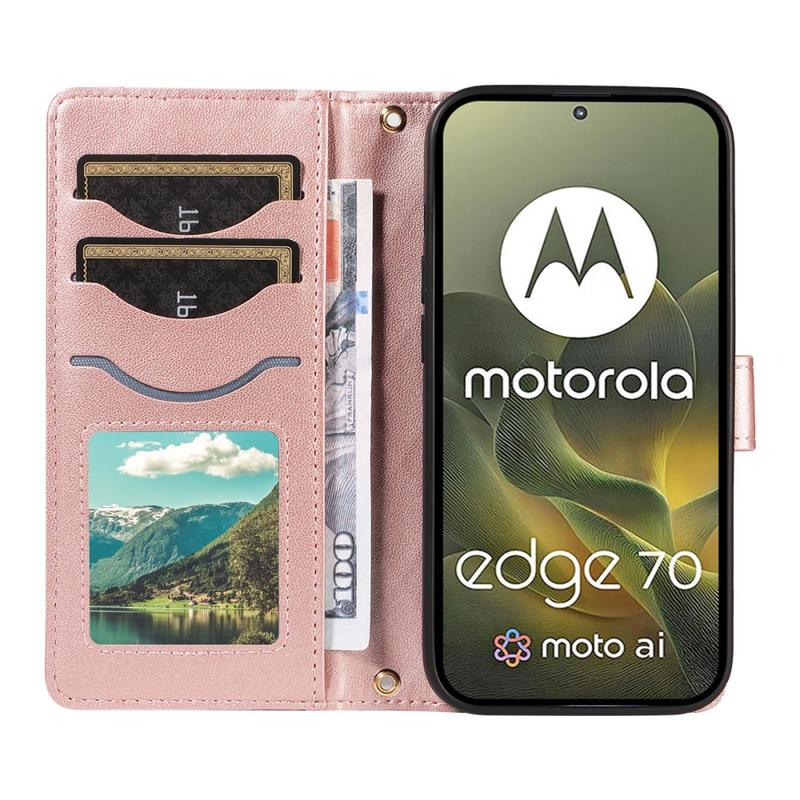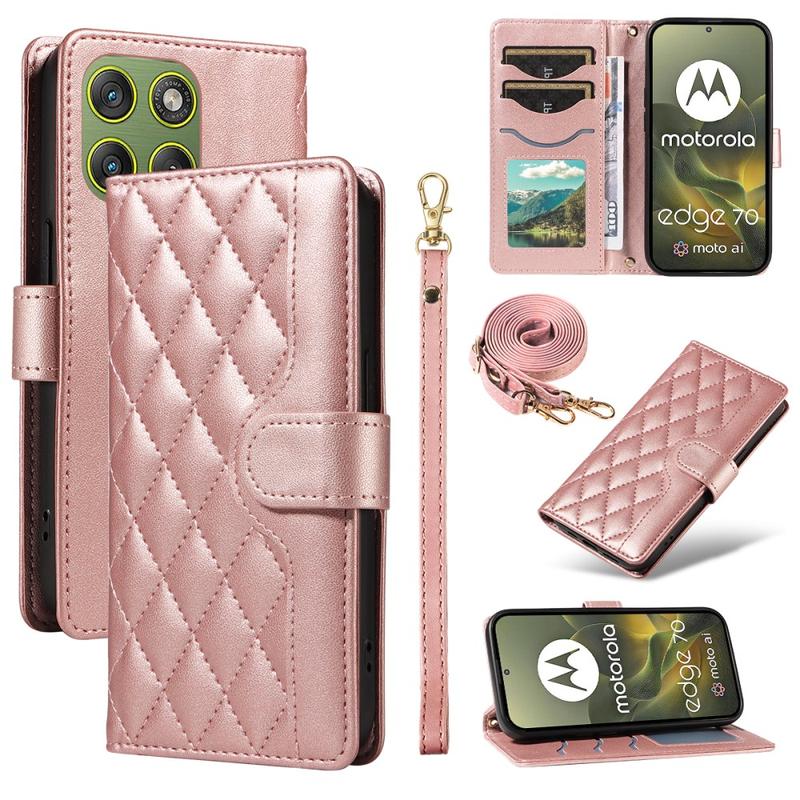 Ylellinen tikattu lompakko asia olkapää & rannehihna Motorola Edge 70 - Rhombus kuvio Suojakansi