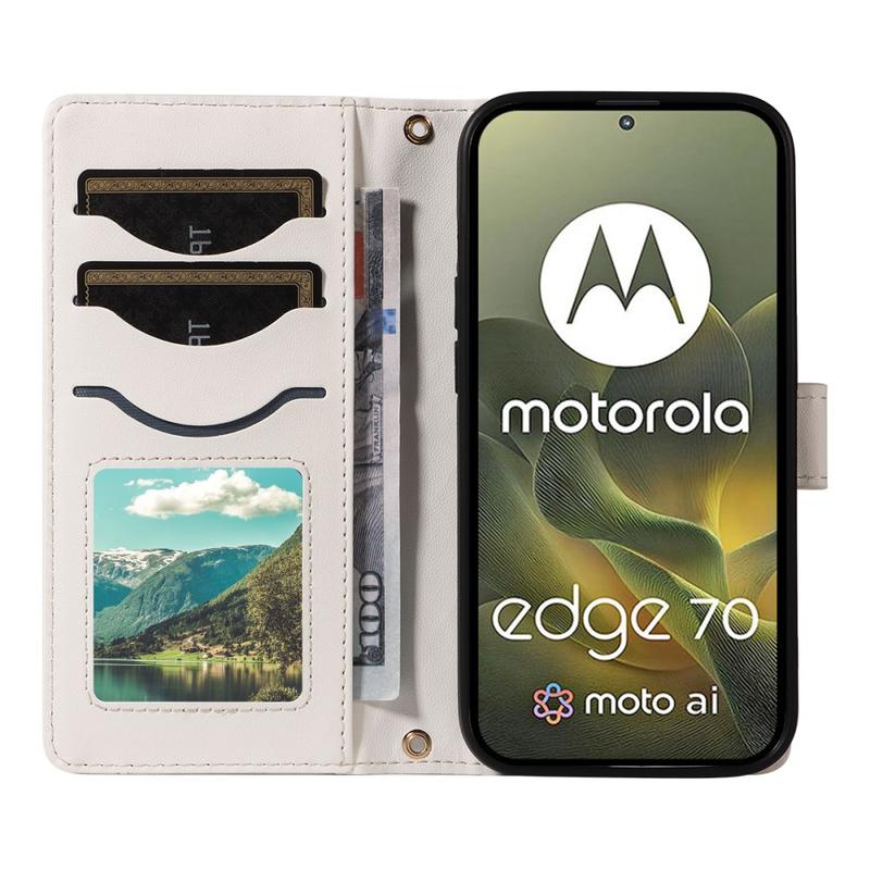 Ylellinen tikattu lompakko asia olkapää & rannehihna Motorola Edge 70 - Rhombus kuvio Suojakansi